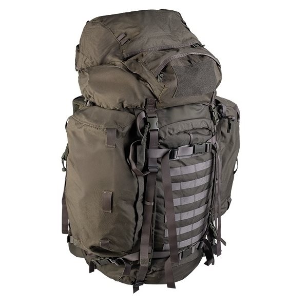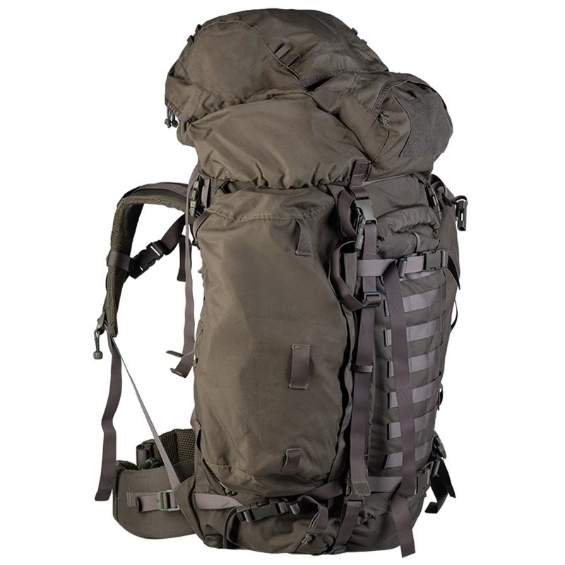 Large military backpack (designed for missions). The backpack has a super comfortable carrying system that provides optimal comfort even with heavy loads. The backpack is carried relatively low to keep the center of gravity close to the body. A firm head opening and a cut-out at the top of the back ensure you can tilt your head back while wearing the backpack.