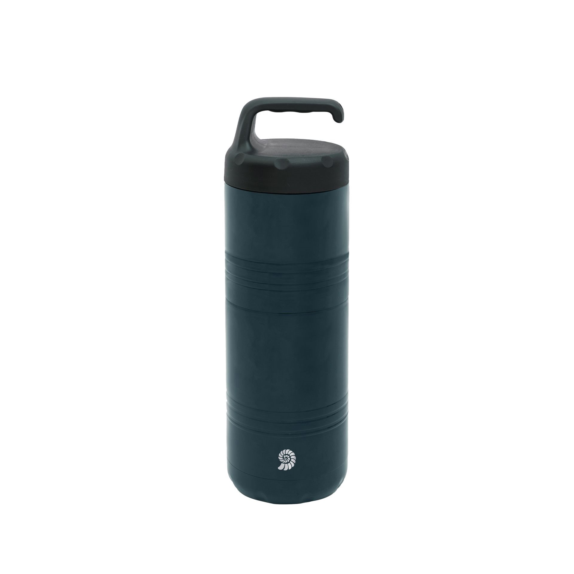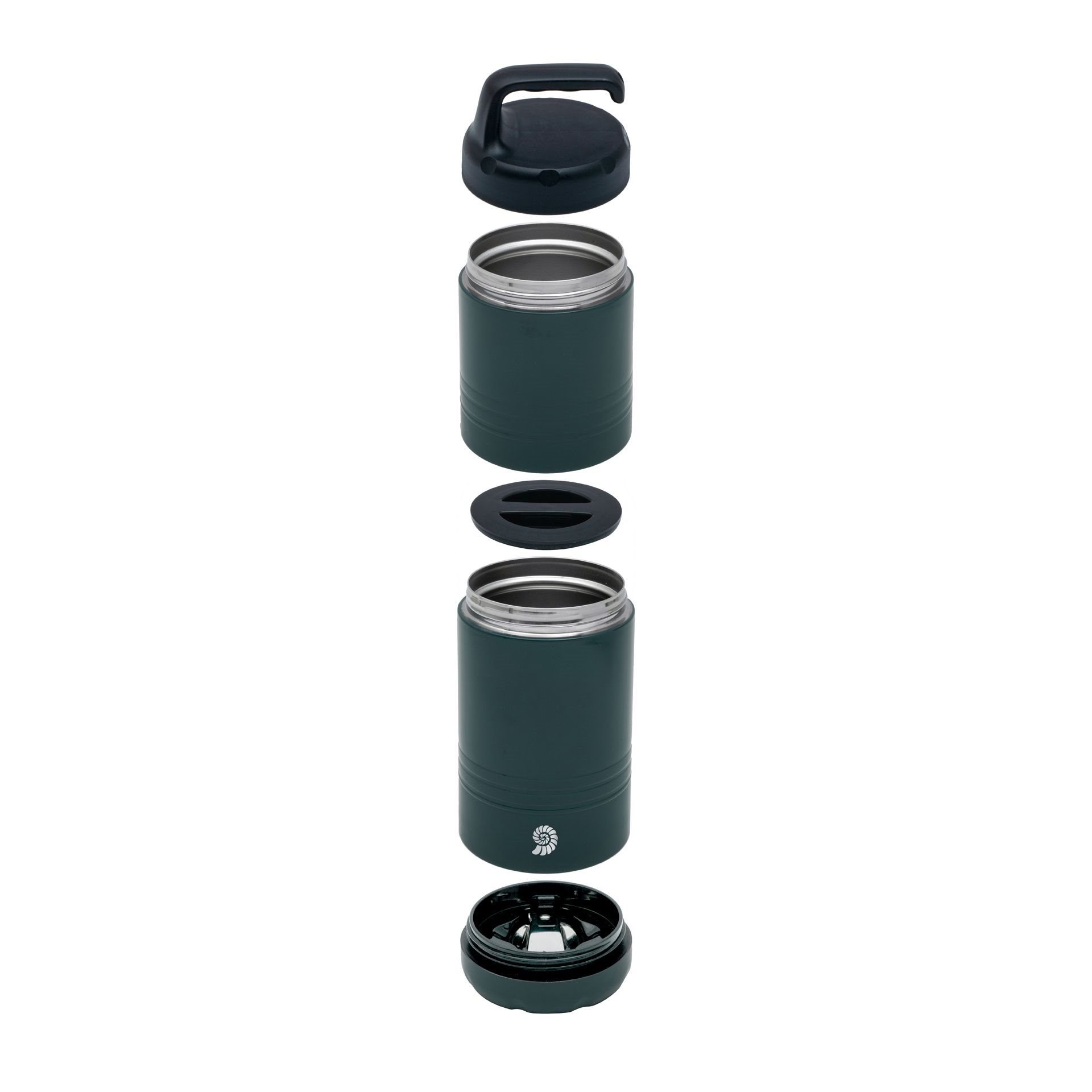 Robust thermal container with extra grip thanks to a soft-touch surface. The indentations on the lid and base make opening much easier. The ergonomic, perforated handle makes carrying easier and also offers an additional attachment option. The container's thread is compatible with other containers, allowing them to be expanded into a stackable container. A foldable stainless steel spoon is integrated into the base. The wide opening makes filling, eating, and cleaning easy. Ideal for outdoor activities, school, and work. Keeps your food hot or cold for a long time.