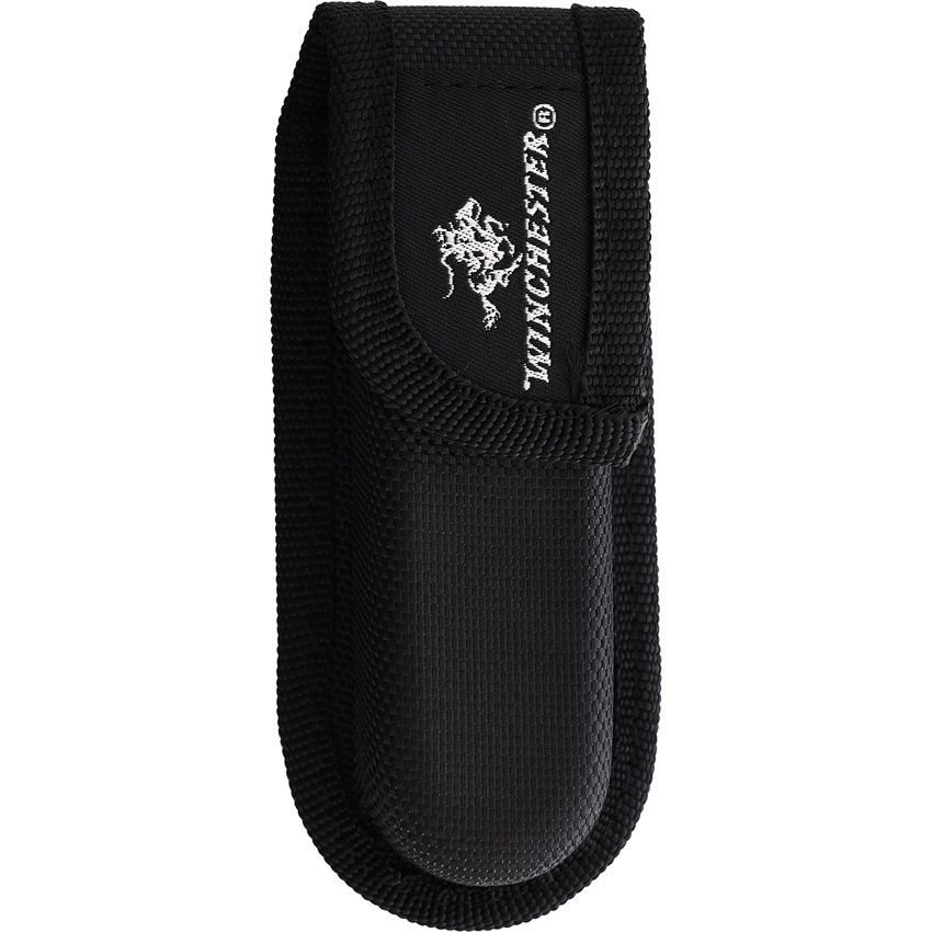 Folding knife with a smooth blade and a handle made of a combination of wood and metal. Includes a belt sheath. More info