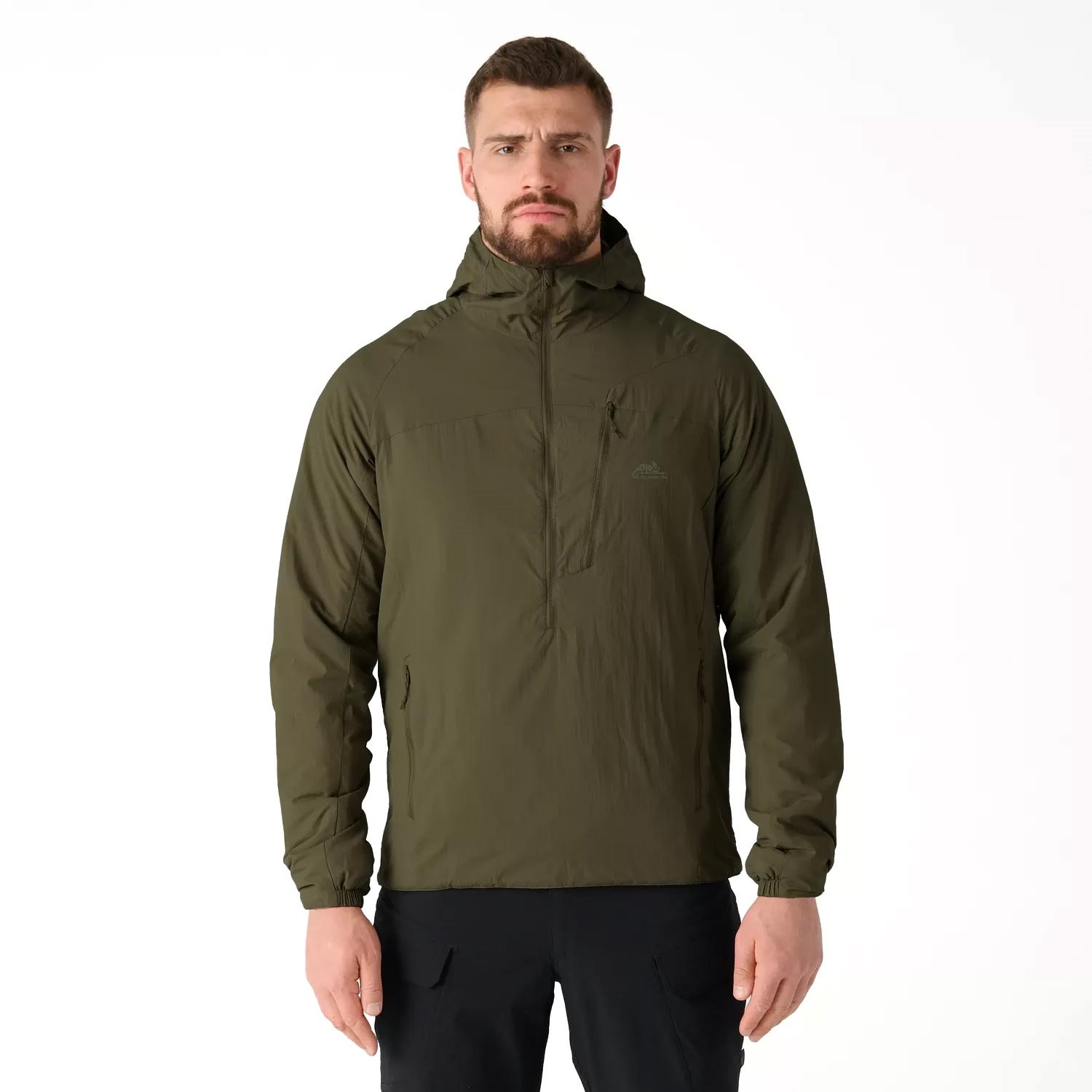 The jacket fastens with a central YKK half-zip, finished at the collar with a neck and beard guard. The hood is quite deep and can be adjusted at the back using an elastic drawcord with a stopper. The hand pockets at the waist are spacious and secured with a zip. The chest pocket is wide, also secured with a zip, and easily accommodates smaller items you want to keep close at hand. The sleeves are raglan-cut for increased durability, and their cuffs are finished with elastic edging to prevent heat loss. The bottom hem of the jacket can be tightened with a drawcord and stopper to maximise comfort.