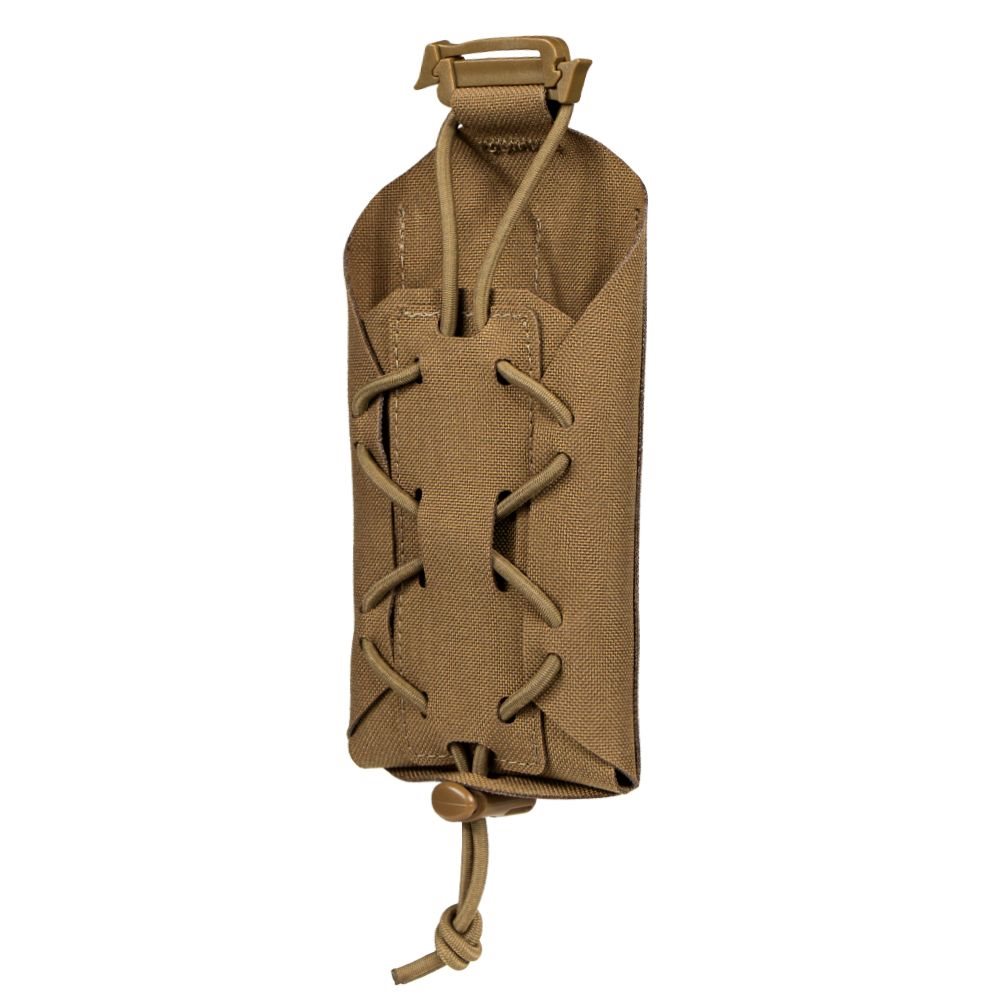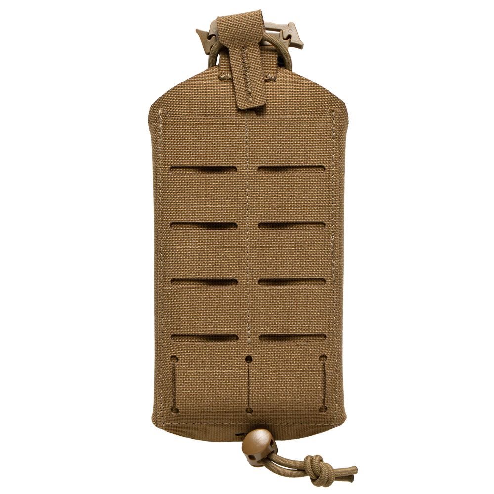 A practical phone case designed not to get in the way when not in use. An adjustable elastic band woven into the construction pulls the empty case together so that it takes up a minimum of space. Its compact dimensions and low weight allow it to be attached to a backpack or equipment, so you always have your phone at hand. For devices with a maximum height of 15.3 cm.