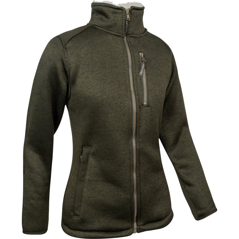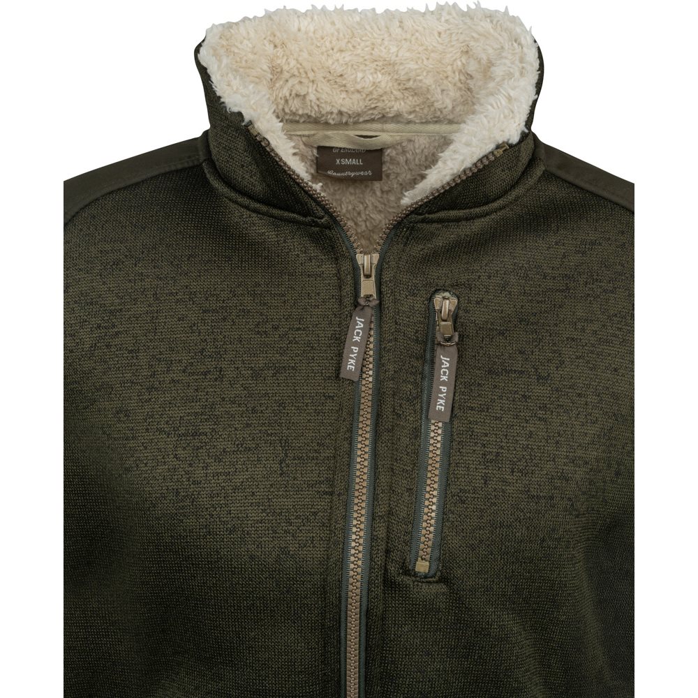 The Jack Pyke Ladies Scandinavian Fleece Jacket features a soft knitted outer and a luxuriously warm Sherpa fleece lining for maximum insulation on chilly days.