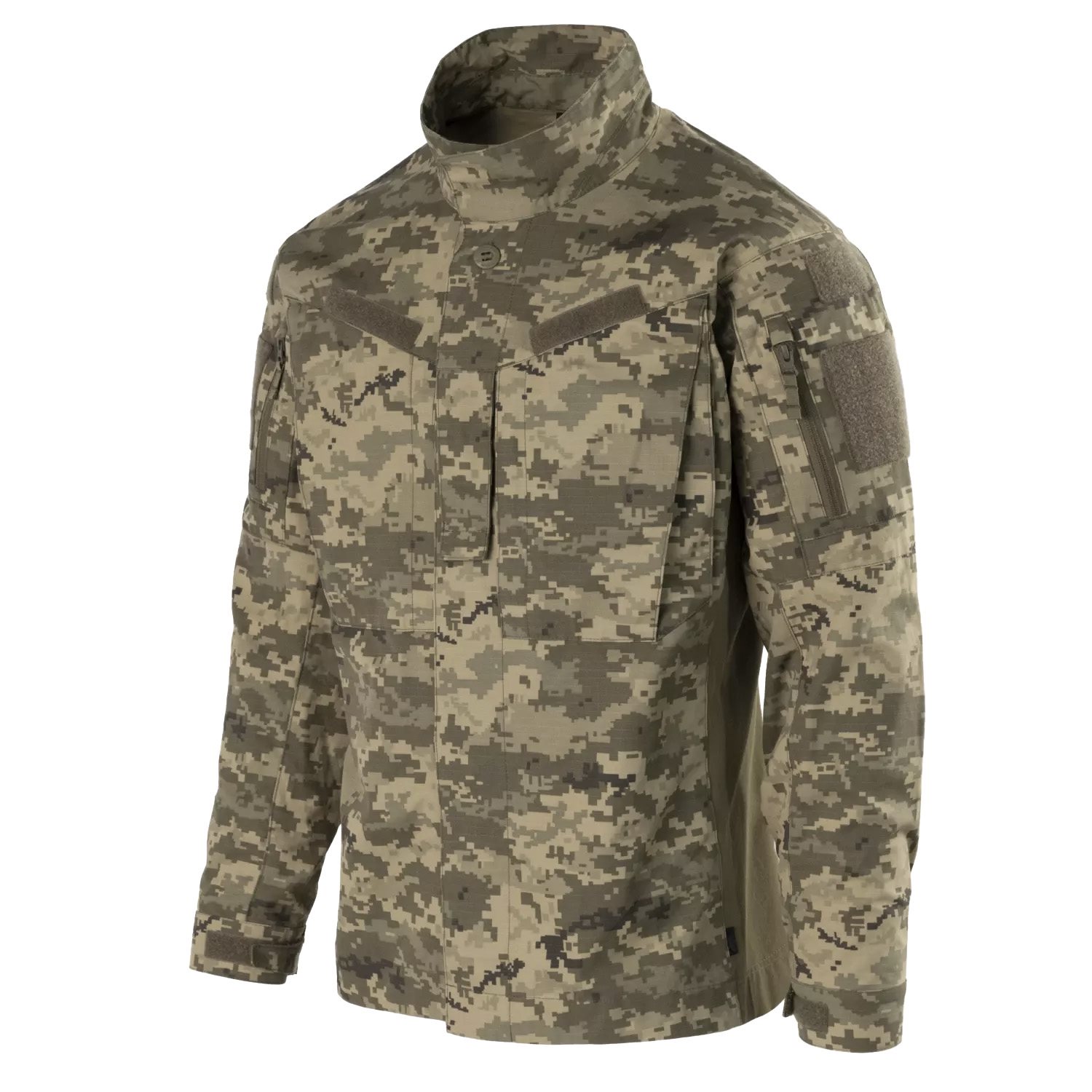 The MBDU Shirt is a part of our advanced field uniform Modern Battle Dress Uniform. This uniform was made of top quality fabrics, carefully chosen to provide not only the high durability, but also freedom of movement, which is utmost important on the battlefield. The shirt has profiled fit with side stretchable panels made of VersaStretch® fabric. Classic collar can be easily transformed into a stand-up collar, and closed with hook&loop tape. On the chest there are two zippered pockets as well as loop panels for patches above them. Additionally in the center part there is a rank tab. Mesh panels in arm pits will provide enhanced breathability. On the biceps there are zippered pockets with loops inside for dummy cording. Additionally there are loop large loop panels for patches on biceps as well as smaller ones above them for flags or IFF patches. Reinforcements on elbows work also as a pockets for protection pads.