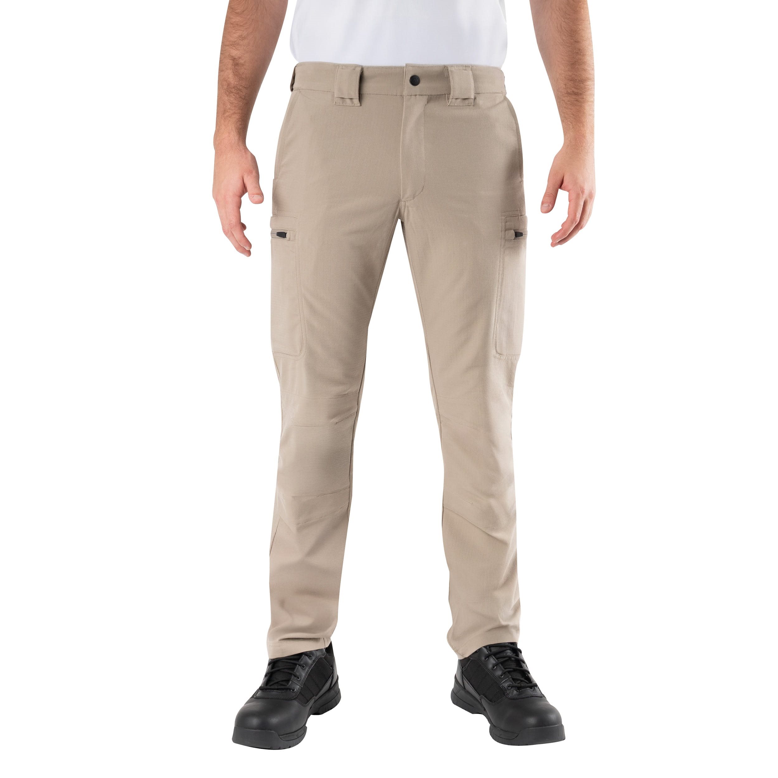 PATROL trousers are manufactured with an emphasis on high durability, while retaining a range of tactical features. You can expect a two-way stretch polyester and cotton blend in a micro rip-stop design with DWR (Durable Water Repellent) treatment. The self-tightening waistband with an internal anti-slip section ensures that the trousers always fit and your tucked-in shirt stays tucked in. There are 5.7 cm wide belt loops with double stitching and space for attaching a service badge. The stretch crotch of the trousers provides greater mobility while reducing stress on the seams. The trousers are equipped with a pocket system consisting of low-profile side cargo pockets with internal pouches for pistol magazines, open pockets for a phone, and classic front hand pockets and back pockets for valuables.