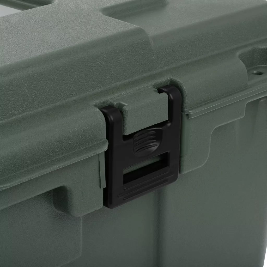A practical transport box from Plano, sturdy yet, given its size, also relatively lightweight. Fully hinged lid for easier handling. Wheels on one side make transport more convenient. A total of three lock holes on the lid.