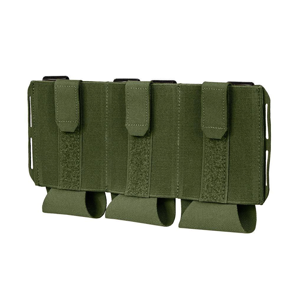 Open triple pouch for the Vanquish Armour System (VAS). Made of durable elastic material. Thanks to its adjustable bottom, the pouch can hold M4/AR magazines of various capacities or other equipment you need to have at hand. The side loops can be used to hang additional equipment.