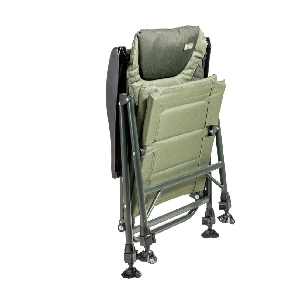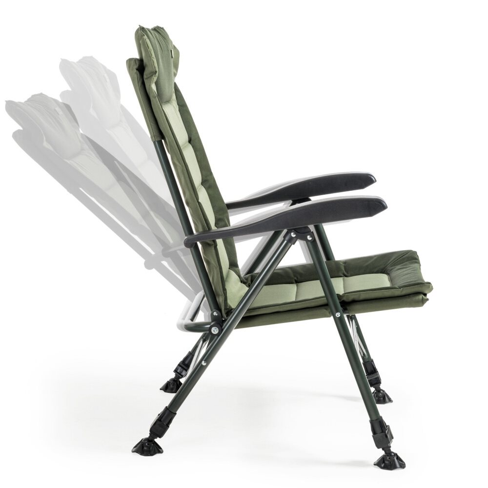 A compact version of the popular Comfort Quattro chair with an extremely sturdy steel frame with a load capacity of 175 kg. The backrest is adjusted by lifting the armrests and tilting it to the desired position. The mattress is made of strong, durable and easily washable P-POL 600D material. The chair is equipped with new unique leg locks that can be operated by simply pressing or stepping on them. High-quality swivel feet to prevent sinking are a matter of course.