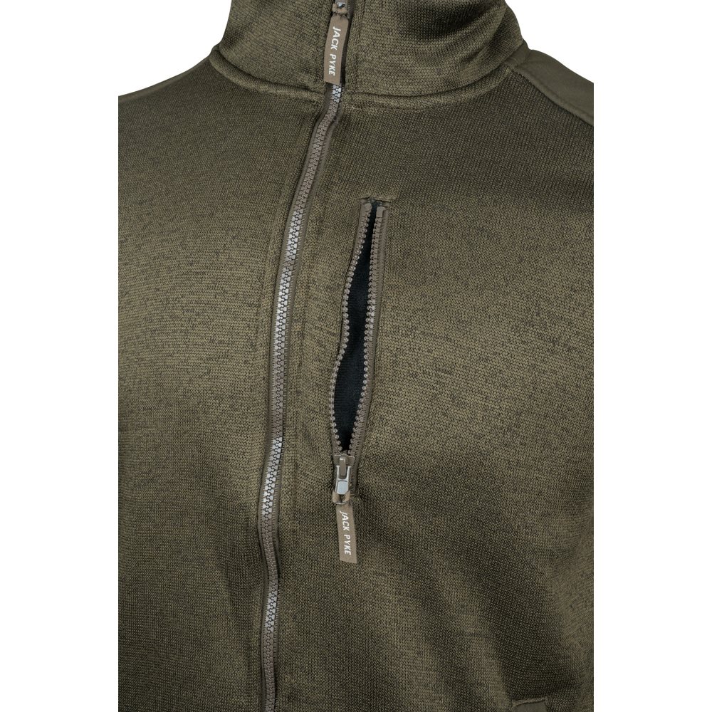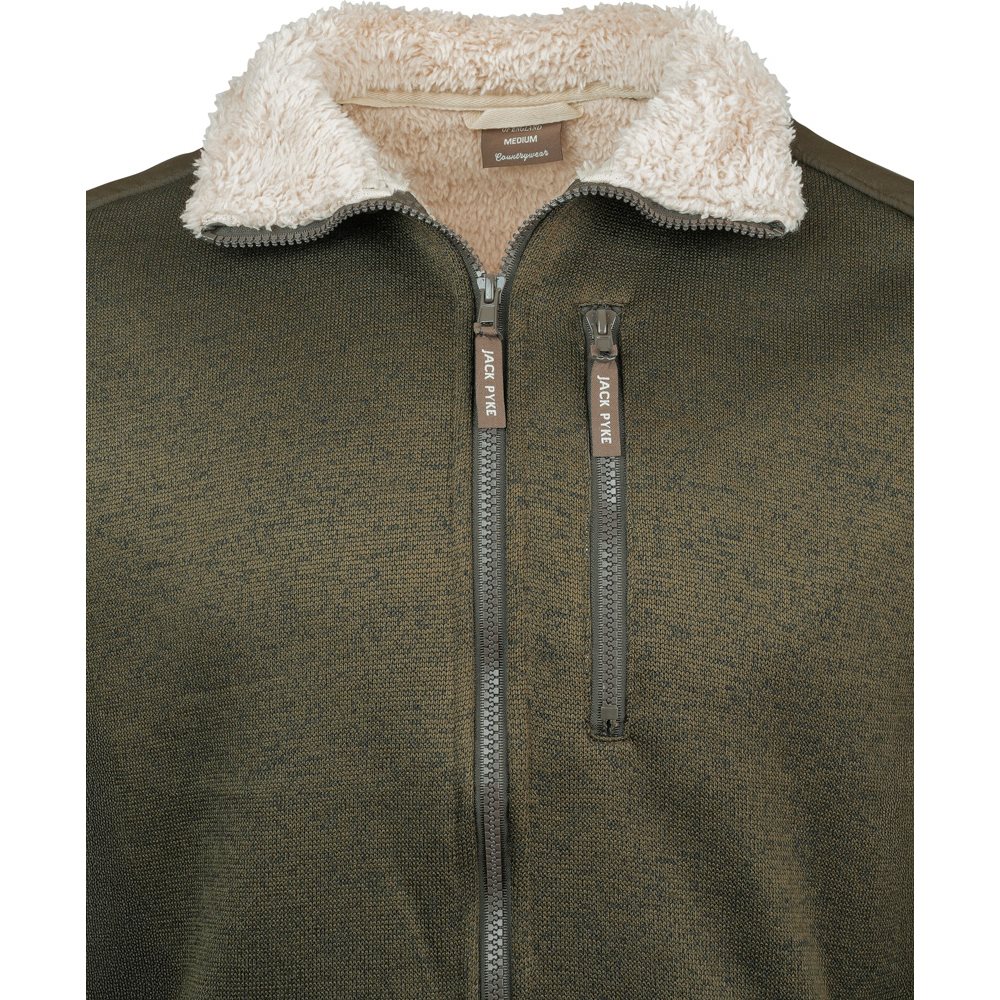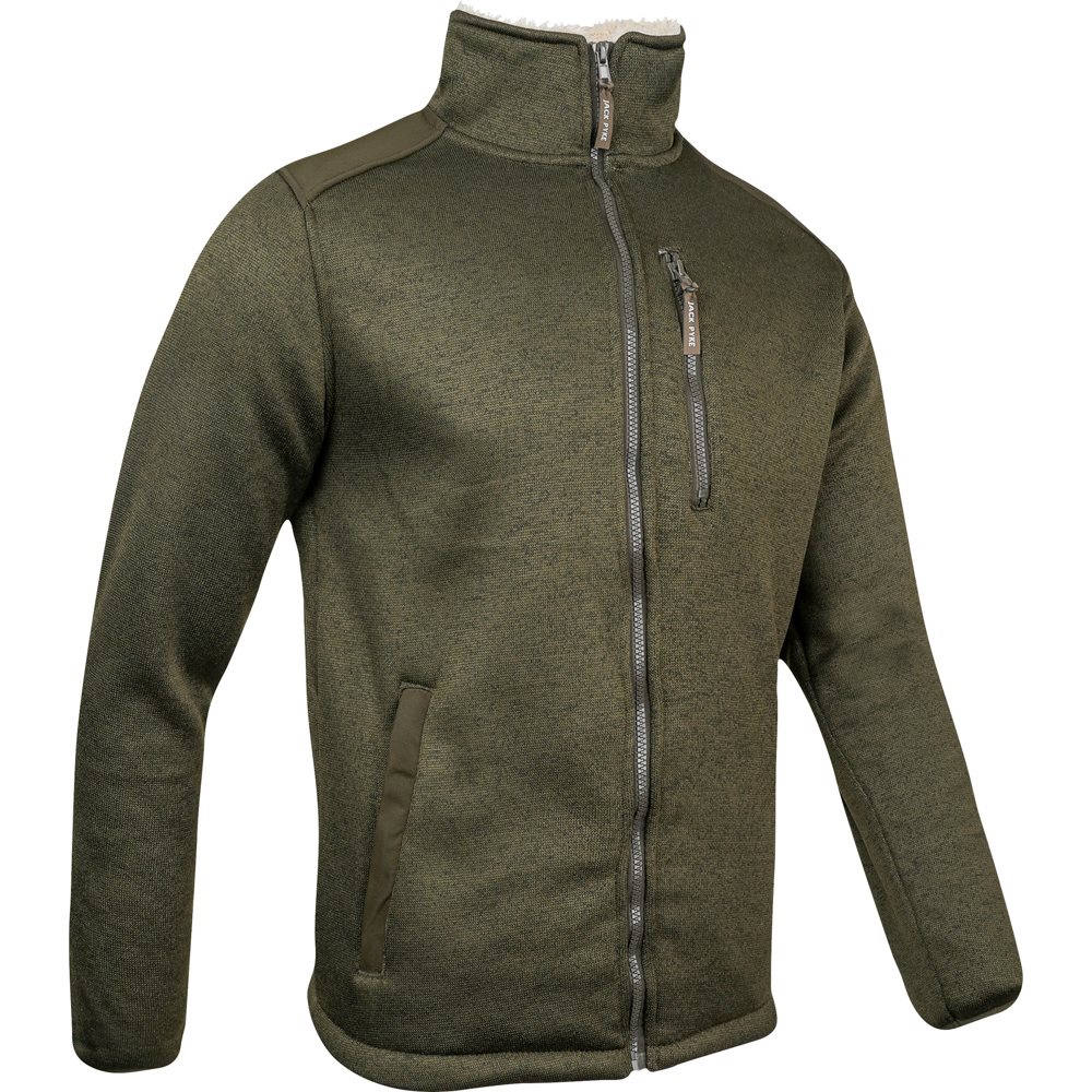 The Jack Pyke Scandinavian Fleece Jacket features a soft knitted outer and a luxuriously warm Sherpa fleece lining for maximum insulation on chilly days.