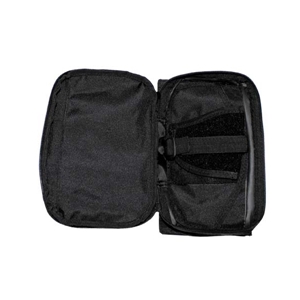 Fully openable main pocket with two-way zip and removable pistol holster with Velcro fastening (slip-on pocket with two elastic loops)