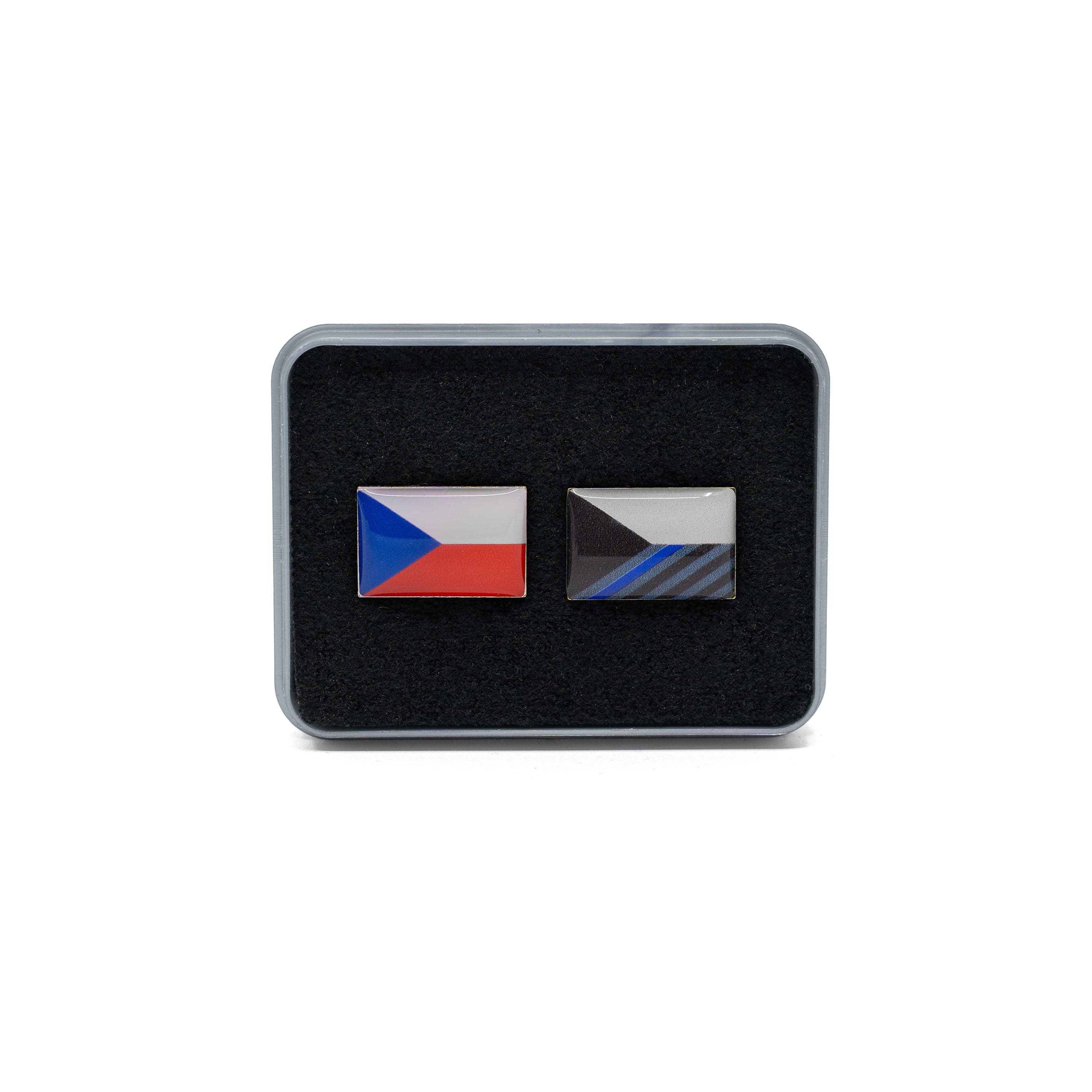Set of flag badges CZECH REPUBLIC with thin blue line