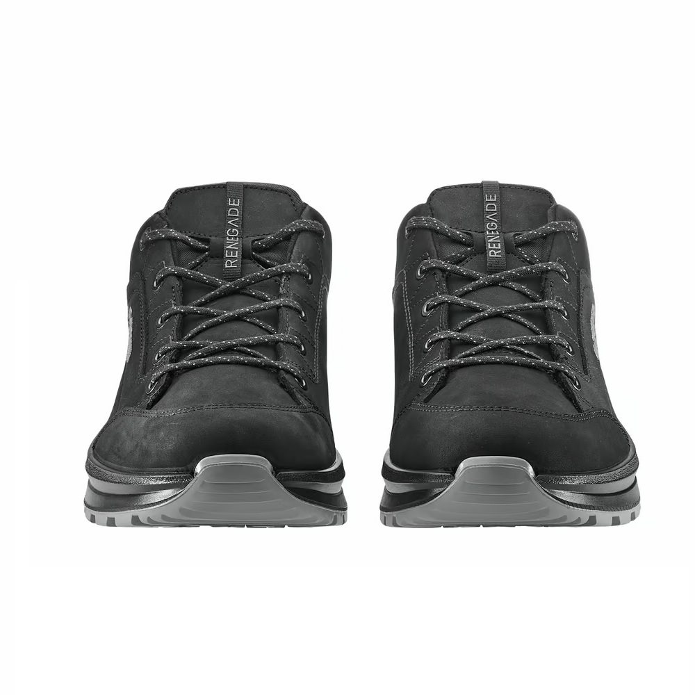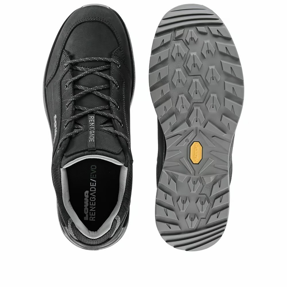 LOWA is bringing another innovation to the popular and worldwide best-selling RENEGADE model in 2024. Fewer individual leather parts were used in the production of the new RENEGADE EVO upper. In the lacing, the last hook has been removed, so the lace only goes through the eyelets. The outsole has also undergone an innovation, which now has a better grip on the ground and a more elegant look. The shoe is now usable for both trekking in the countryside and urban hiking.