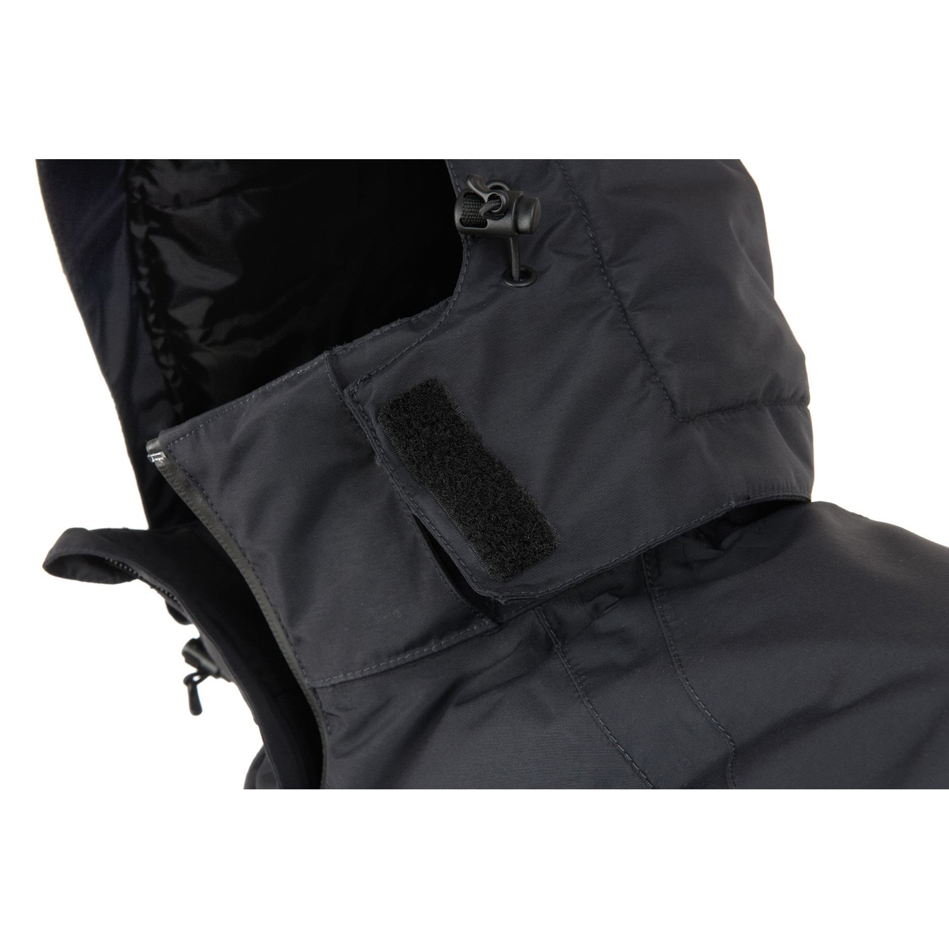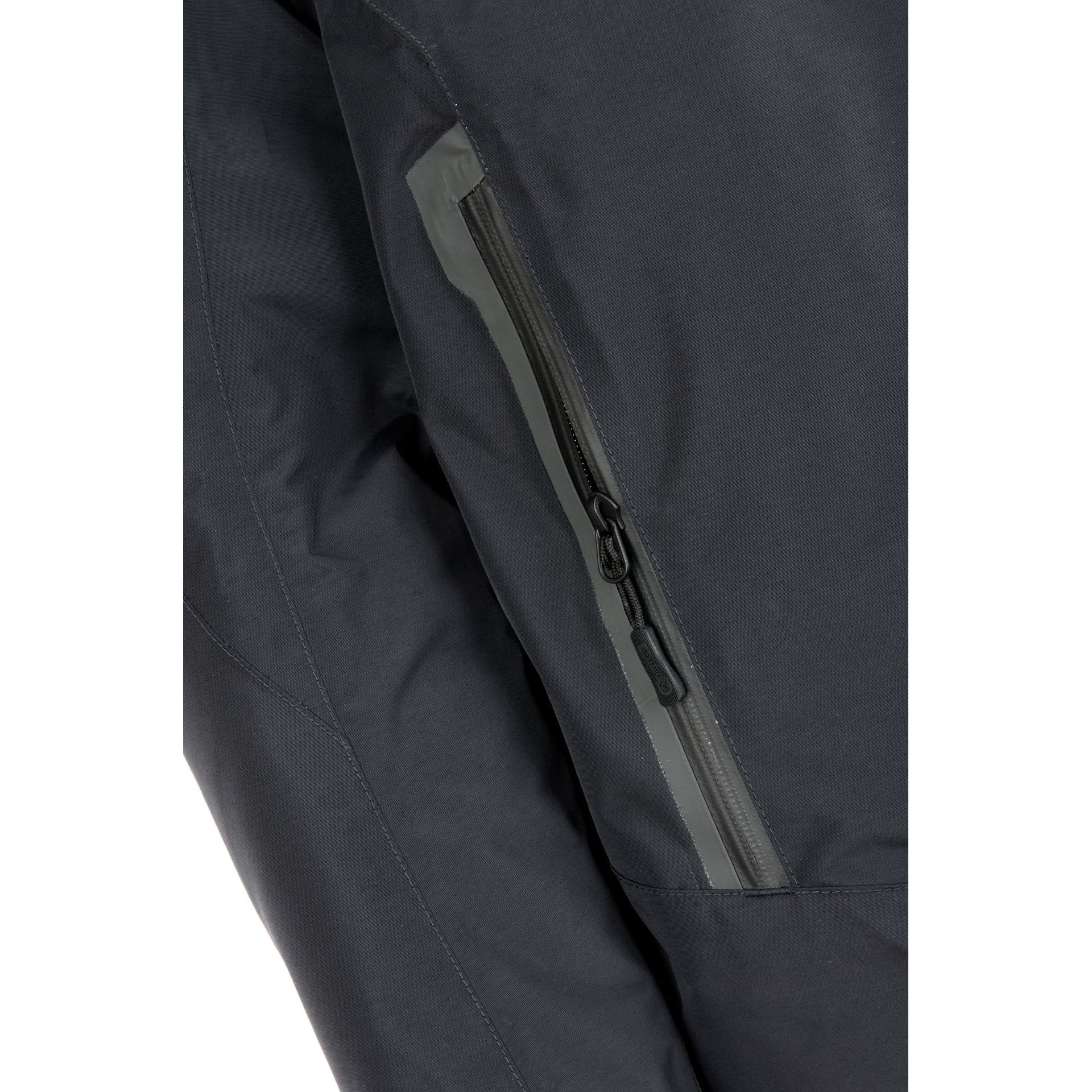 The jacket fastens with a waterproof and windproof two-way YKK® zip, which is finished with a neck and beard guard at the stand-up collar. The collar features a detachable, insulated hood with adjustable sizing. At the waist, you’ll find two deep hand pockets with an insulated lining. The pockets are large enough for gloved hands or for storing small items and valuables. There is also a smaller pocket on the inside of the jacket. The bottom hem of the jacket can be tightened using an elastic cord, and the sleeve cuffs can be adjusted using Velcro.