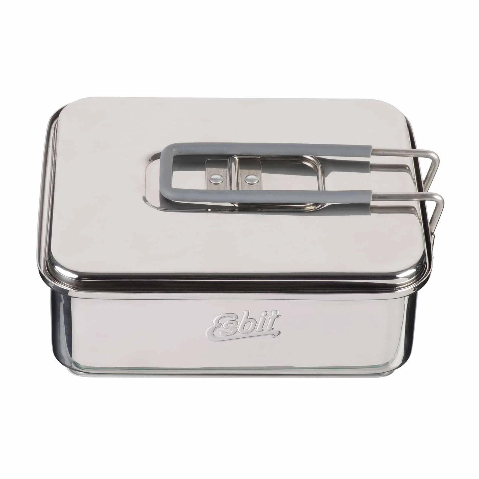 The handle of the Esbit cookset is foldable. This allows for a compact pack size. It is also coated with silicone for heat protection. The lid of the cookset is fitted with a spring mechanism at the base. This allows the lid to be secured to the rim of the pot whilst cooking. This keeps your hands free and the lid clean.