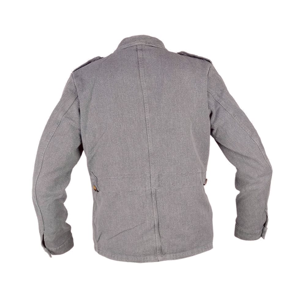 Original Swiss Army work shirt from army surplus - used. Different button designs, metal belt loops are missing on some blouses. Material: 100% cotton.