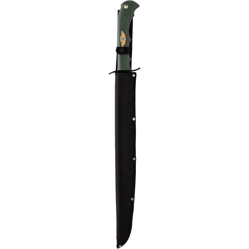 Overall length: 71 cm. Black nylon sheath with shoulder strap and belt loop.