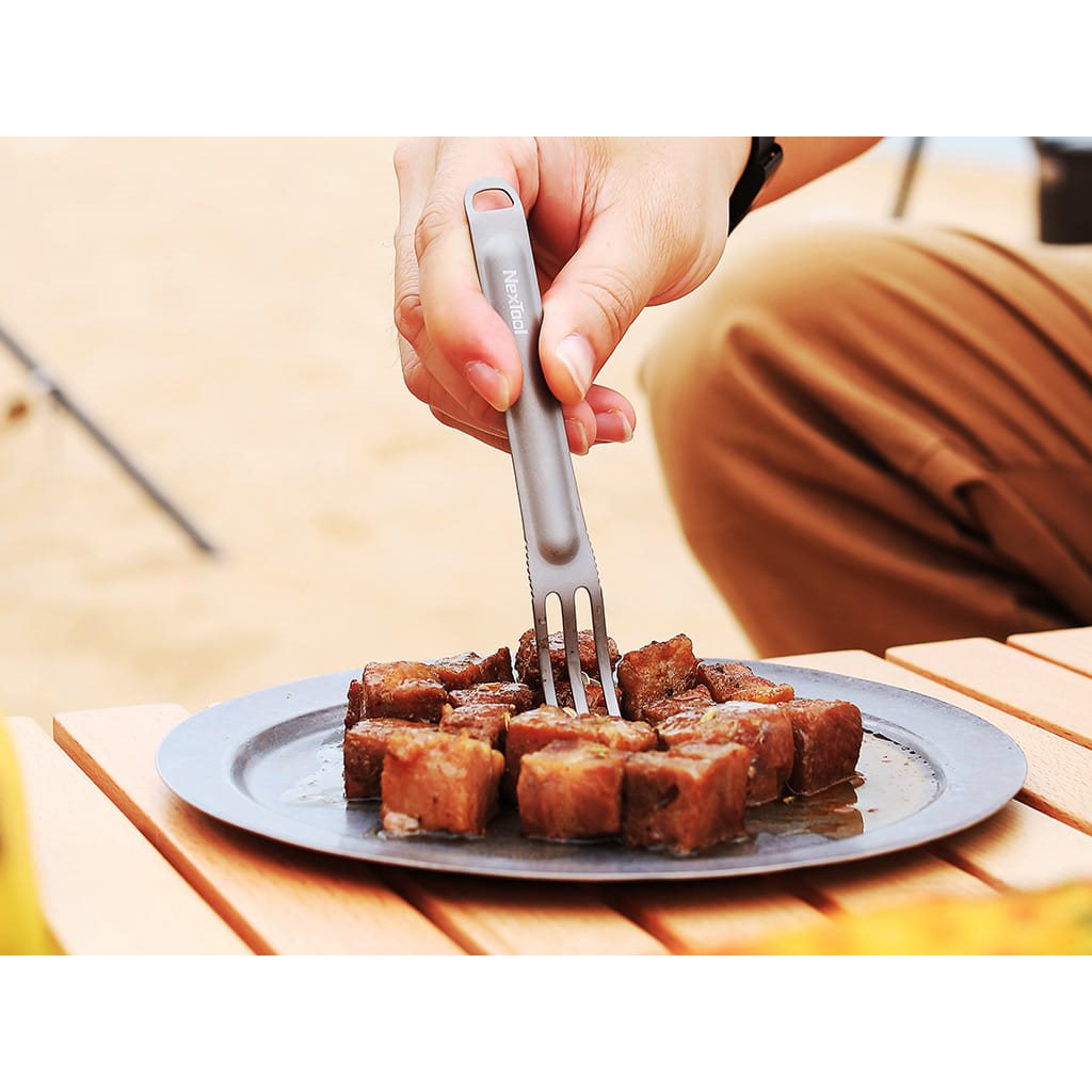 Integrated fork spoon design with quick detach function.Stores neatly as one piece yet separates easily when needed.Save space in your pack while still enjoying a full dining experience outdoors.