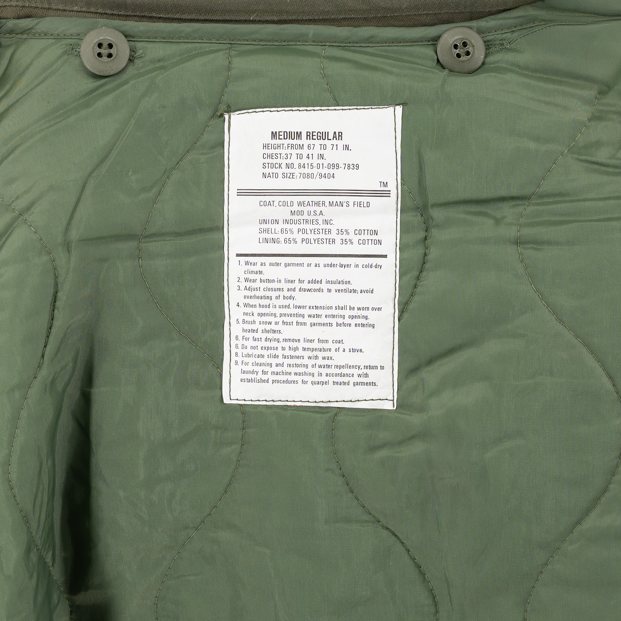 Classic legendary jacket in the M65 pattern, including a detachable quilted lining. Metal zips. Material: 65% polyester / 35% cotton.