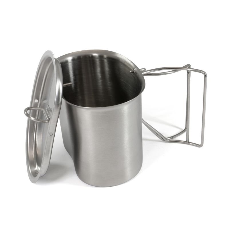 The stainless steel Feldflaschenbecher "2 in 1" from Origin Outdoors is a versatile drinking cup and small cooking pot that fits perfectly with US-style canteen bottles thanks to its classic "canteen cup" shape. It is ideal for bushcraft, hiking, survival and military use.