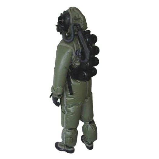 The OPCH-05 is a fully sealed, positive-pressure suit providing a high level of protection against life-threatening environments containing chemical substances of unknown composition in both liquid and gaseous phases, including aerosols