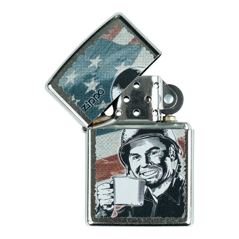 Inspired by the classic G.I. Joe theme from the American war era. This Zippo features a vintage G.I. Joe Coffee illustration, symbolizing camaraderie, perseverance, and the daily ritual of strong coffee at the front. A cool piece of military nostalgia with an authentic Americana look.